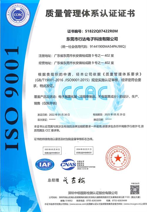 本文來源:驗廠之家網 - 祝賀東莞市行達電子科技有限公司2022年一次性成功通過ISO9001認證