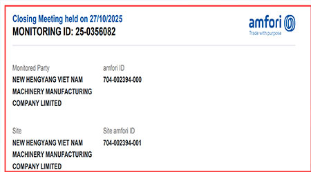 本文來源:驗廠之家網 - 祝賀越南NEW HENGYANG VIET NAM MACHINERY MANUFACTURING COMPANY LIMITED2025年一次性成功通過SGS-BSCI驗廠