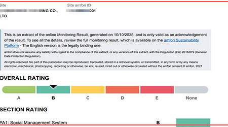 在創思維驗廠之家網老師專業技術、一對一跟進耐心輔導及公司全體員工配合下,一次性順利通過BSCI-B級,為將來公司發展奠定良好的發展基礎,既開拓了市場同時也增加了消費者對公司的信賴,在這里再次祝賀柬埔寨LISHUN BOYE CLOTHING CO.,LTD 2025年成功通過BSCI-B級,同時也期待未來再次與創思維驗廠之家網合作!
