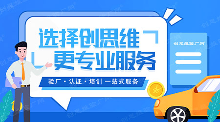 如果企業想做驗廠輔導,不妨考慮一下創思維驗廠之家,創思維驗廠之家是專業的驗廠輔導公司,已經為全國各地上萬家企業服務過,在全國多處設有辦事處,會就近安排老師進場輔導,我們的輔導原則是幫助企業通過驗廠,深圳市創思維是一家正規專業的驗廠咨詢、驗廠輔導、認證輔導公司,一切以合同條款為準,不亂收費,并盡可能為企業節約成本,通過后付款!